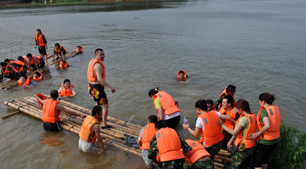 3 注意竹筏上人員分布 上海拓展培訓。